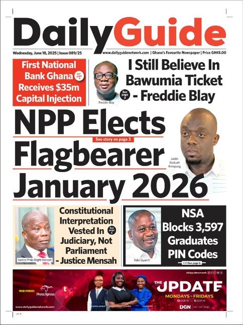 Newspaper Headlines: Wednesday, June 18, 2025 Newspaper Headlines June 18, 2025 6:39 am - Audio By Carbonatix FacebookWhatsAppTwitterTelegramEmailPinterestPrint Previous articleAll new Facebook videos to be classified as Reels soon, Meta saysNext articleTogo suspends RFI and France 24 for three months, communications authority says TagsNewspaper headlines RELATED ARTICLES International ‘Bandits’ kidnap worshippers during church service in Nigeria Politics Supreme Court to hear Nyindam’s application to overturn Kpandai election ruling today News US military strikes 3 more boats in the Pacific Ocean, killing 8