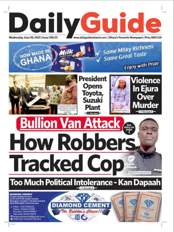 Newspaper Headlines: Wednesday, June 30, 2021 Newspaper Headlines June 30, 2021 7:22 am - Audio By Carbonatix FacebookWhatsAppTwitterTelegramEmailPinterestPrint Previous articleGhana hails strategic partnership with JamaicaNext articleEuro 2020: Ukraine book quarter-final with England after dramatic win over Sweden RELATED ARTICLES Newspaper Headlines Newspaper headlines: Monday, November 24, 2025 Newspaper Headlines Newspaper headlines: Friday, November 21, 2025 Newspaper Headlines Newspaper headlines: Thursday, November 20, 2025