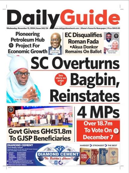 Newspaper headlines: Wednesday, November 13, 2024 Newspaper Headlines November 13, 2024 8:20 am - Audio By Carbonatix FacebookWhatsAppTwitterTelegramEmailPinterestPrint Previous articleAmenfi Central: Joana Cudjoe reveals ‘magic’ that helped her  Next articleHigh Court should’ve handled vacant seats case – Justice Atuguba TagsNewspaper headlines RELATED ARTICLES News Sam Jonah seeks Ablakwa’s intervention over alleged seizure of investments in Nigeria Local News Lands ministry engages Ewoyaa chiefs, residents in successful lithium agreement talks News Kwesi Botchway Jnr requests update from A-G on EOCO galamsey investigations