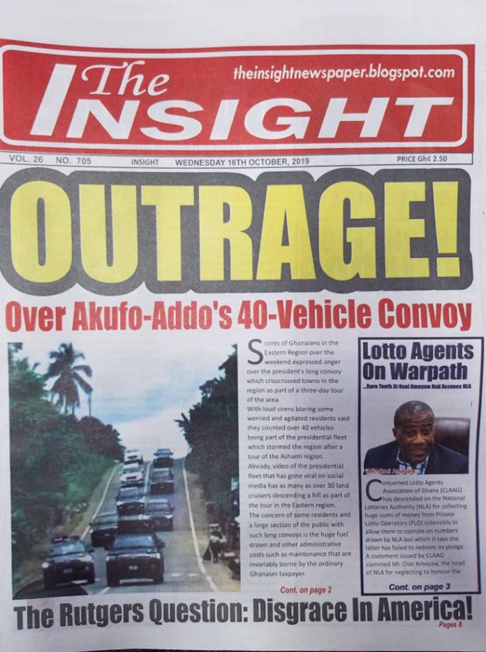 Newspaper Headlines: Wednesday, October 16, 2019 Newspaper HeadlinesUncategorized October 16, 2019 6:19 am - Audio By Carbonatix FacebookWhatsAppTwitterTelegramEmailPinterestPrint Previous articleNduom reacts to demo by Gold Coast CustomersNext articleMan takes ‘a shit’ in front of Flagstaff House RELATED ARTICLES Newspaper Headlines Newspaper headlines: Monday, November 24, 2025 Newspaper Headlines Newspaper headlines: Friday, November 21, 2025 Newspaper Headlines Newspaper headlines: Thursday, November 20, 2025