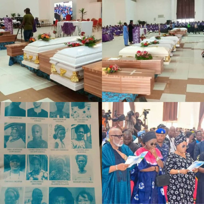 The funeral of the 40 persons gruesomely killed by unknown gunmen who attacked the St. Francis Catholic church, Owo, on June 5, is currently taking place in the state.