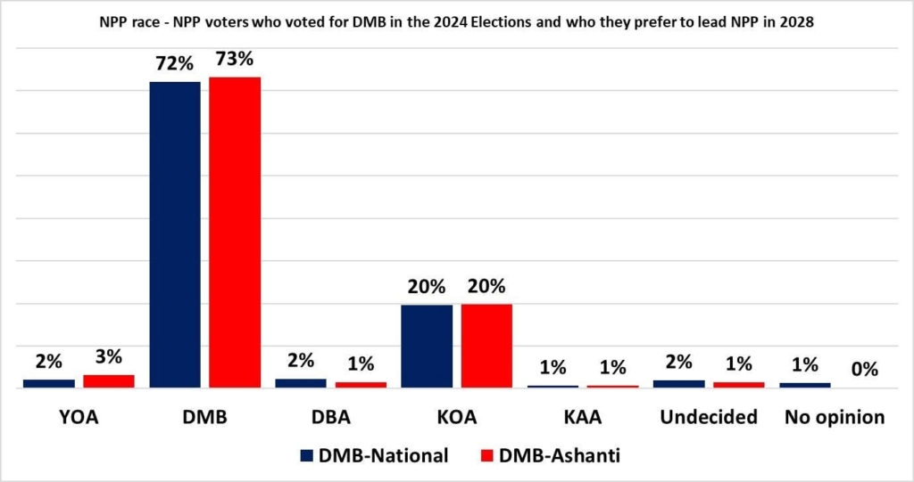 The findings suggest that despite internal rivalry, most NPP loyalists still view Dr. Bawumia as the candidate best positioned to unite the party and sustain its transformational agenda.