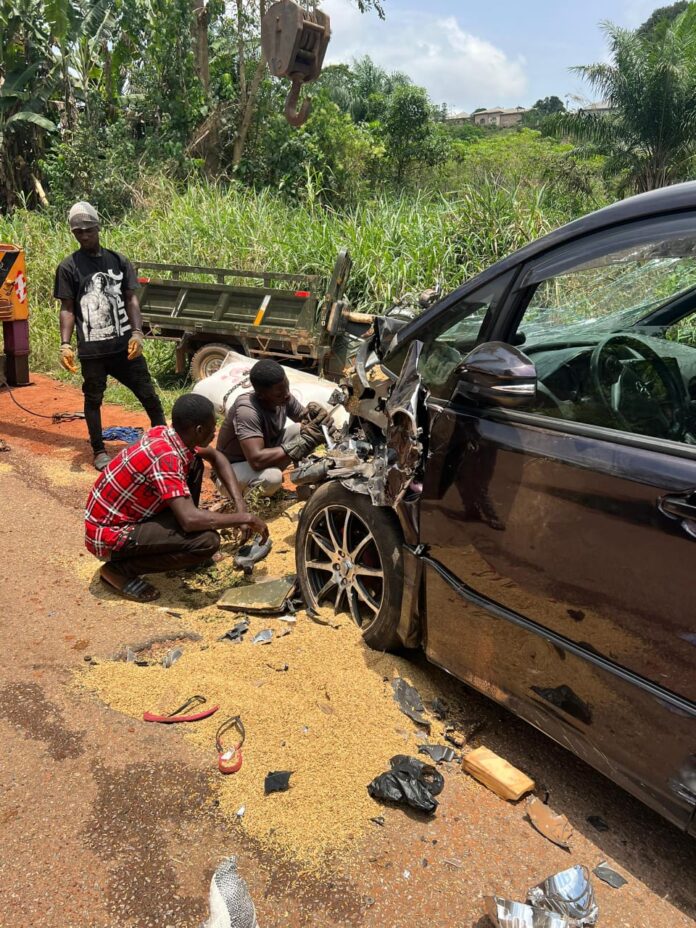 One person is in critical condition after a tricycle loaded with rice suffered brake failure and crashed into a Voxy car at Hwidem in the Asante Akyem North Municipality.