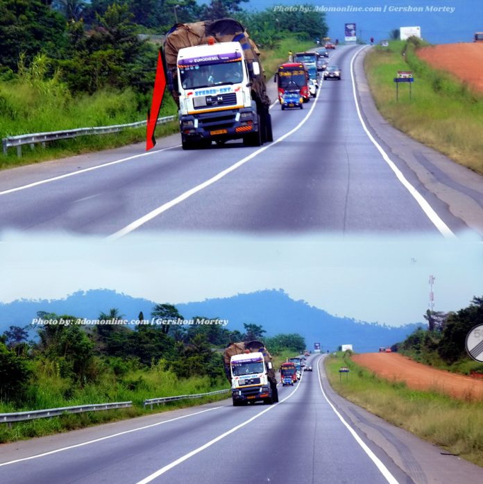 Photo of the week: Overloaded Cargo vehicle losing balance on the Accra-Kumasi highway