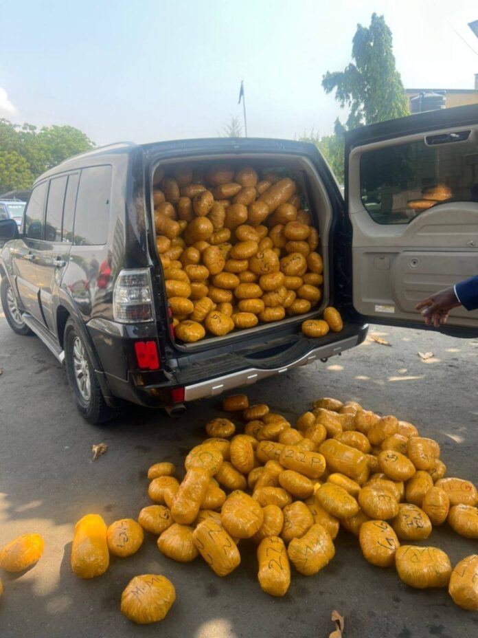 A search revealed 872 parcels in the Mitsubishi Pajero and 741 parcels in the Toyota Highlander, all suspected narcotics.