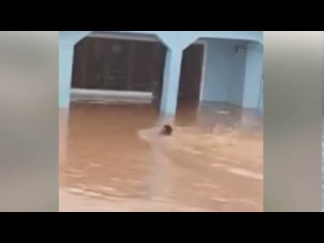 Residents turn flooded home into swimming pool