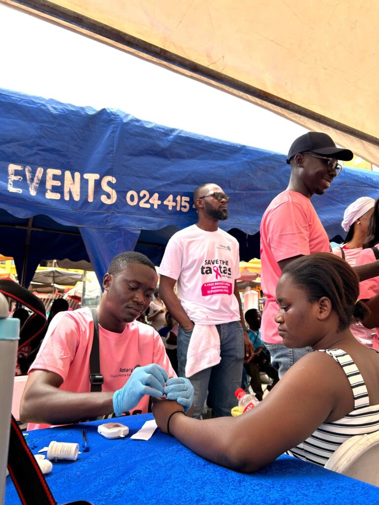 The Rotary Club of Accra-East, in collaboration with 16 Rotary Clubs, 4 Rotaract Clubs, and 7 partner organisations, organised a successful breast and cervical cancer screening exercise on Saturday, 11th October 2025, at the Madina Market.
