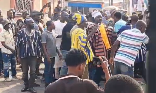 Security personnel faced challenges maintaining order on Monday, December 1, outside the Manhyia Palace in Kumasi as rival factions of the long-standing Bawku chieftaincy dispute clashed during ongoing mediation efforts.