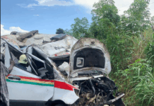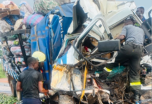 While heading to Accra on the Nkawkaw-Anyinam road, their Toyota Corolla with registration number GX 9245-13 crashed in front of a police station, causing some officers to surround the scene.