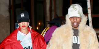 Rihanna gets shy as she rocks revealing dress for A$ap Rocky’s...