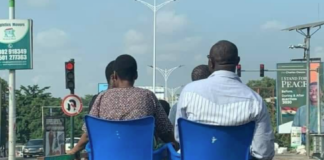Trending Photo: Friends take a ride sitting on plastic chairs on...
