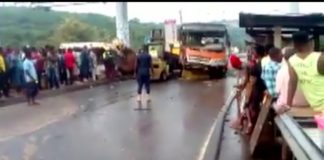 MMT bus’ brake fails, rams six cars at Ayi-Mensah toll booth