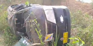 Saloon car overturns on Motorway; passengers escape death