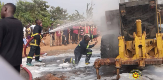 Grader working on Ajumako–Swedru road project catches fire [Photos]