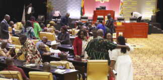 Ghana parliament sitting: NPP, NDC MPs fight over majority seat [Photos]