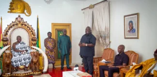 Watch scenes from Manhyia as Mahama calls on the Asantehene