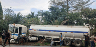 GNFS averts explosion after petrol tanker accident at Aveme Junction