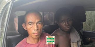 Bekwai Forestry Commission arrests 2 illegal miners, burns excavator [Photos+Video]