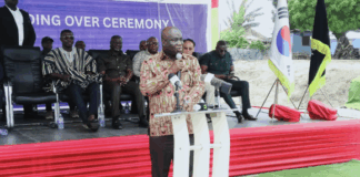 Eric Opoku cuts sod for six-unit classroom block and teachers’ quarters...