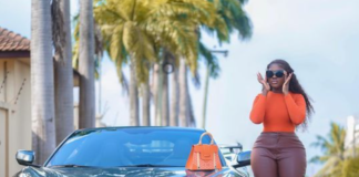 Massive reaction as Fella Makafui drops classy photos with supercar