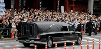 Japanese mourners pay last respects to ex-Prime Minister Shinzo Abe at...