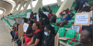 Suspended Ghana Water staff picket at Black Star Square, demanding reinstatement