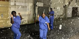 Ghanaian nurses in Belfast dance in snow as they see it...