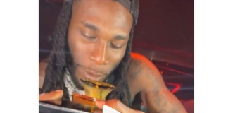 Burna Boy takes Grammy plaque to club; drinks out of it...