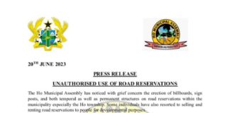 Ho Municipal Assembly cautions public on unauthorised use of road reservations