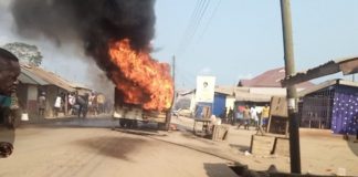Two escape death as fire guts moving truck at Mankessim [Photos]