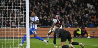 Mohammed Kudus scores in West Ham draw against Brighton, celebrates with...