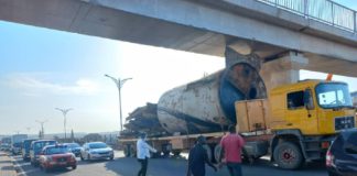 Driver of truck stuck under footbridge on N1 arrested [Photos]