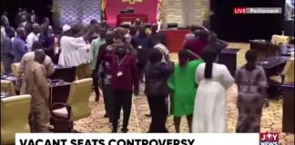 Drama as NDC MPs occupy majority side of Parliament [Watch]