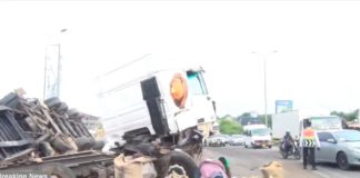 Multiple trucks involved in accident on Nsawam road [Photos]
