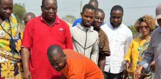 Prophet Daniel Amoateng cuts sod for construction of resettlement houses in...