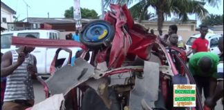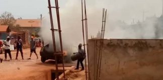 Fire Service personnel arrive in taxi to douse flames at Akyem...
