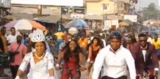 Couple, bridesmaids and groomsmen ride bicycle to wedding [Watch]