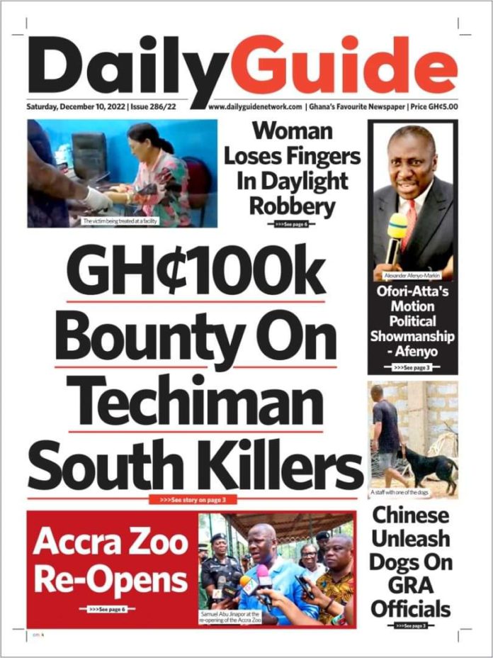 The Weekend’s Newspaper Headlines Newspaper Headlines December 10, 2022 9:18 am - Audio By Carbonatix FacebookWhatsAppTwitterTelegramEmailPinterestPrint Previous articleHow long does it take to fall in love?Next articleI suspect Ghana qualified for 2022 World Cup with ‘juju’ – Nigeria defender RELATED ARTICLES Newspaper Headlines Newspaper headlines: Monday, November 24, 2025 Newspaper Headlines Newspaper headlines: Friday, November 21, 2025 Newspaper Headlines Newspaper headlines: Thursday, November 20, 2025
