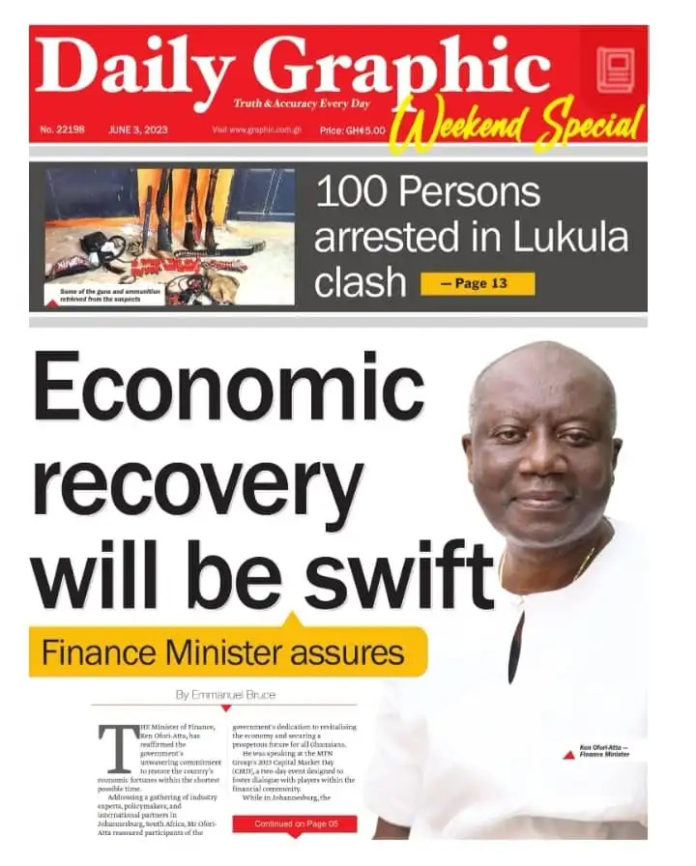 The Weekend’s Newspaper Headlines Newspaper Headlines June 3, 2023 10:30 am - Audio By Carbonatix FacebookWhatsAppTwitterTelegramEmailPinterestPrint Previous articleAssin North bye-election: NDC will not win with sympathy votes – Nana BoakyeNext articleMany Ghanaian girls have made sex cheap – Akuapem Poloo RELATED ARTICLES Newspaper Headlines Newspaper headlines: Monday, November 24, 2025 Newspaper Headlines Newspaper headlines: Friday, November 21, 2025 Newspaper Headlines Newspaper headlines: Thursday, November 20, 2025