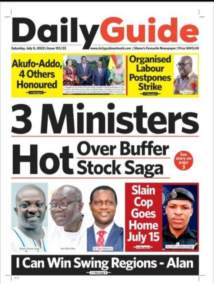 The Weekend’s Newspaper Headlines Newspaper Headlines July 8, 2023 8:32 am - Audio By Carbonatix FacebookWhatsAppTwitterTelegramEmailPinterestPrint Previous article2023 WAFU U20 Cup: Ghana held by Niger in a 1-1 drawNext articleMahama’s running mate: I have no interest whatsoever – Sam Jonah dismisses speculation RELATED ARTICLES News Sam Jonah seeks Ablakwa’s intervention over alleged seizure of investments in Nigeria Local News Lands ministry engages Ewoyaa chiefs, residents in successful lithium agreement talks News Kwesi Botchway Jnr requests update from A-G on EOCO galamsey investigations