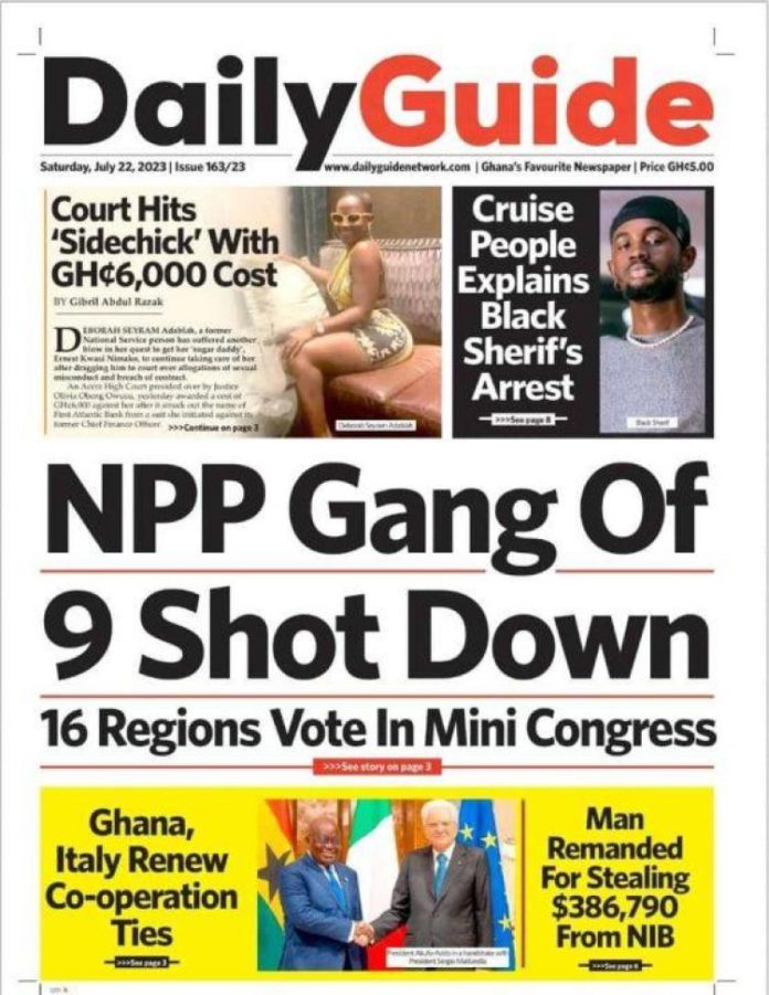 The Weekend’s Newspaper Headlines Newspaper Headlines July 22, 2023 9:56 am - Audio By Carbonatix FacebookWhatsAppTwitterTelegramEmailPinterestPrint Previous articleSanitation Minister breaks silence on US$1m, €300,000, millions of cedis sagaNext articleAdom Music Chart: King Promise’s Terminator still reigns RELATED ARTICLES Local News Mamprugu Overlord rejects Otumfuo’s Bawku mediation report, calls process flawed Local News Shamamanhene Osagyefo Kwaw Frieku IV officially gazetted by Western Regional House of Chiefs Local News Walewale: Gunmen open fire on bus, two critically injured