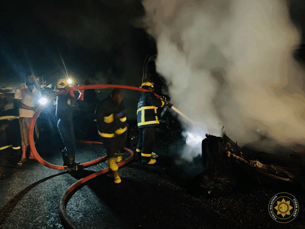 According to the Ghana National Fire Service, the station received a distress call around 12:28 a.m. and quickly dispatched a crew to the scene.
