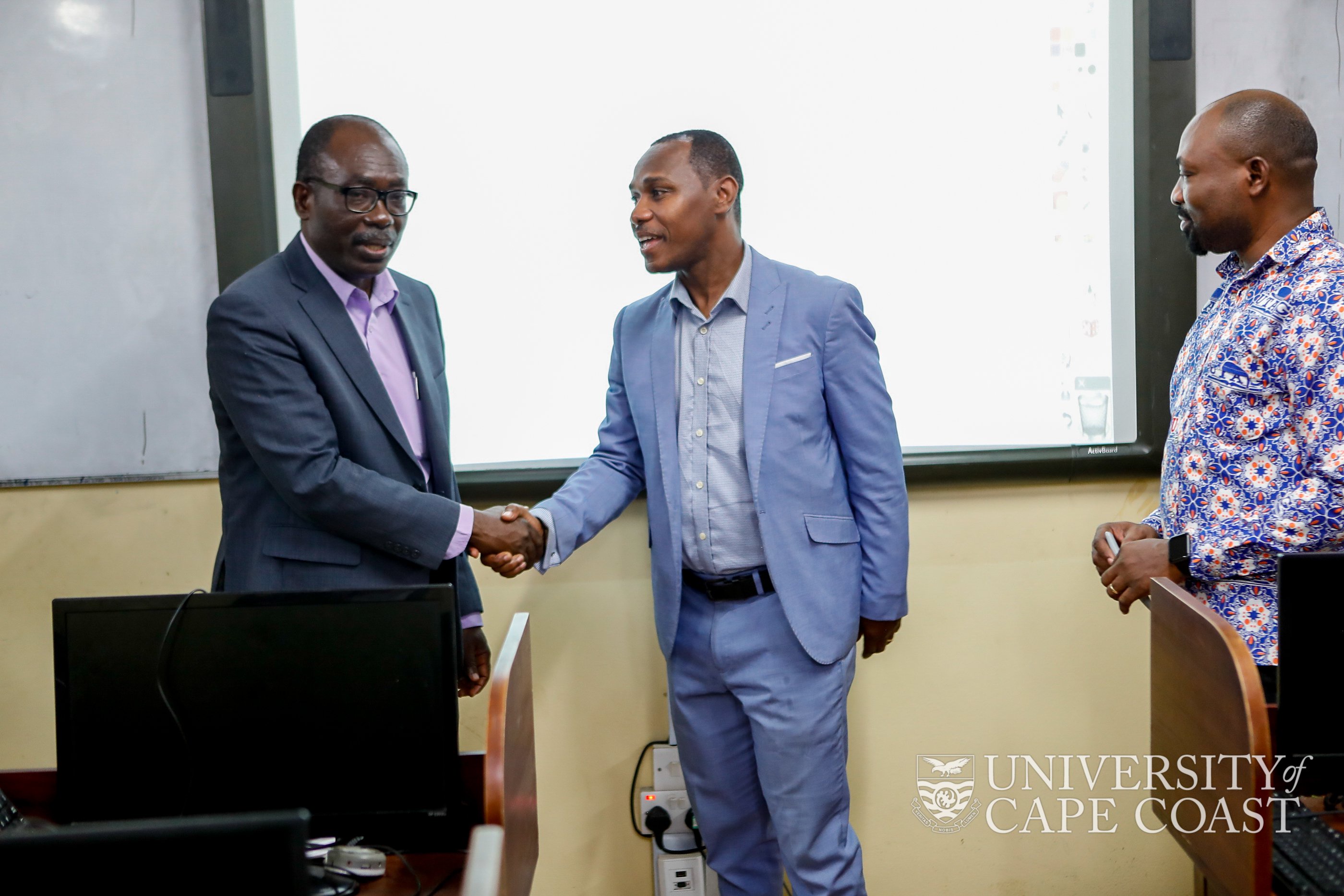 Prof. Ernest Kofi Davis (right) – Provost of the College of Education sharing handshake with Rev. Henry Godson-Afful