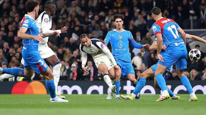 Atleti punctured the atmosphere two minutes after the restart when former Manchester City forward Julian Alvarez beat Spurs keeper Guglielmo Vicario with a superb strike into the top corner.